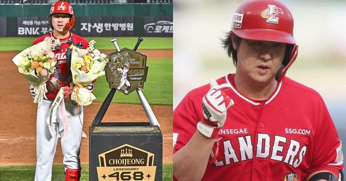 SSG 랜더스 최정이 24일에 열린 롯데 자이언츠전에서 홈런을 치며 KBO리그의 새로운 홈런왕이 되었다.
