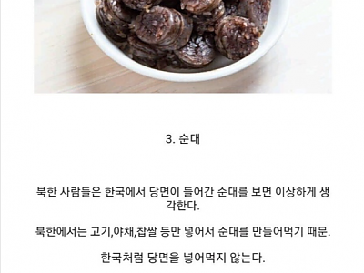 탈북민들이 꺼려하는 남한음식
