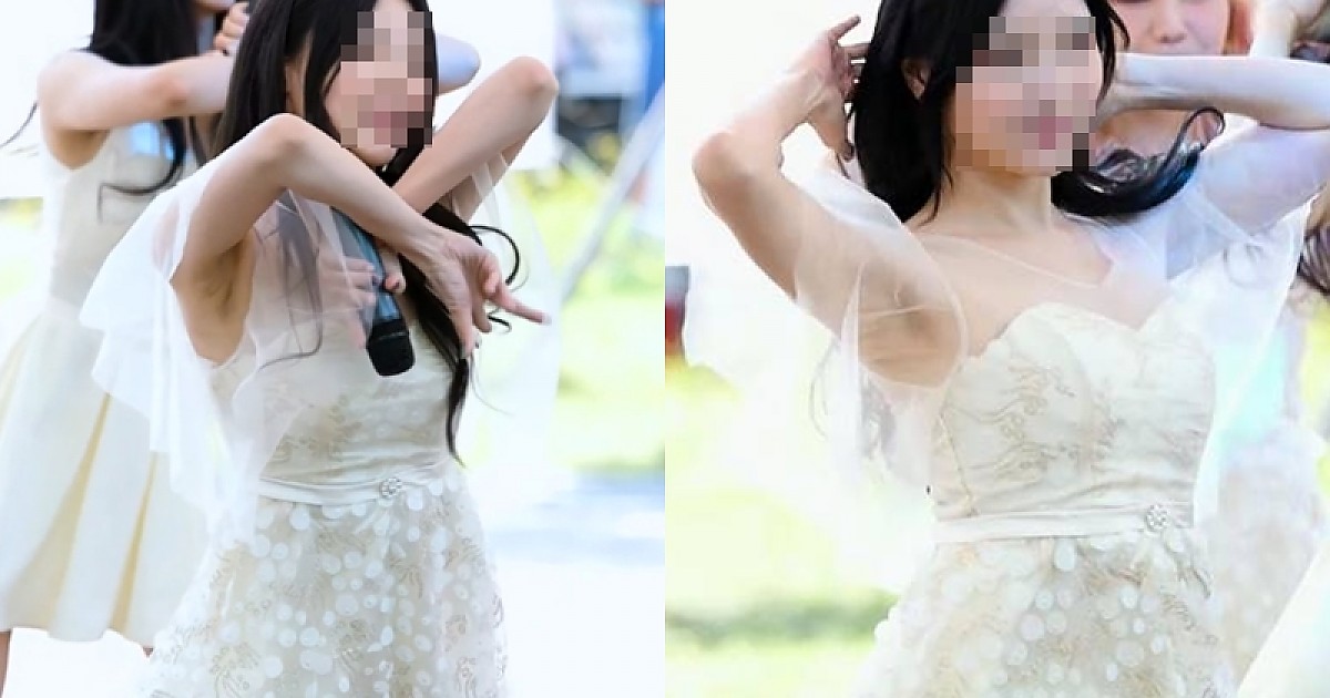 망사로 된 요정 같은 오프숄더 드레스 입고 안무 선보이는 아이돌...ㄷㄷㄷㄷ