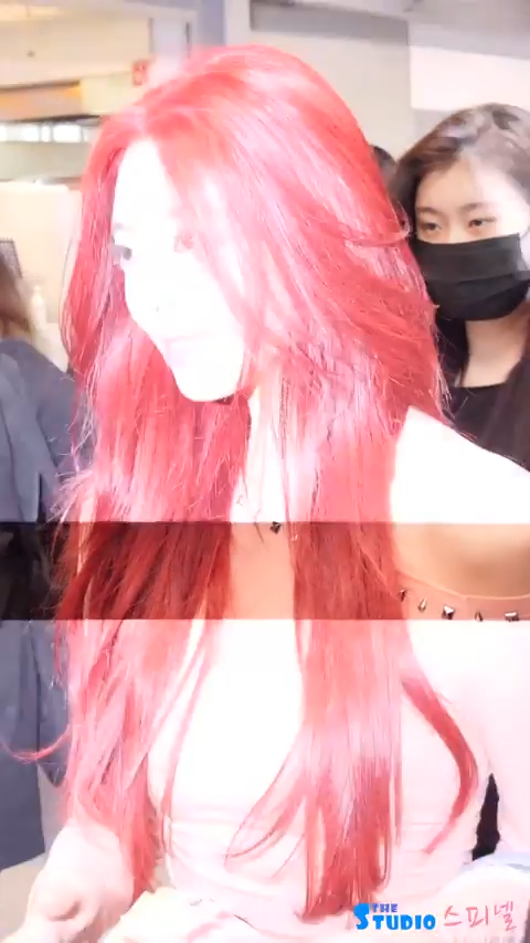 핑크티 + 청바지 골반 라인이 돋보이는 출국길의 아이돌.gif