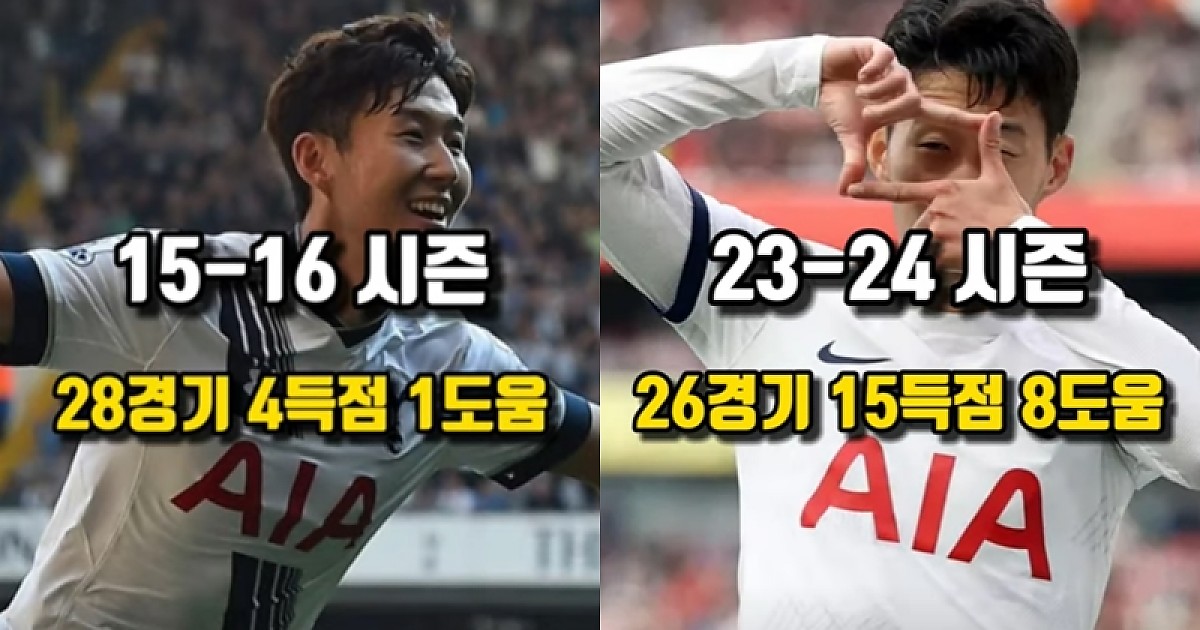 토트넘 캡틴 손흥민의 EPL 데뷔부터 현재까지 시즌별 '리그 기록' (영상)