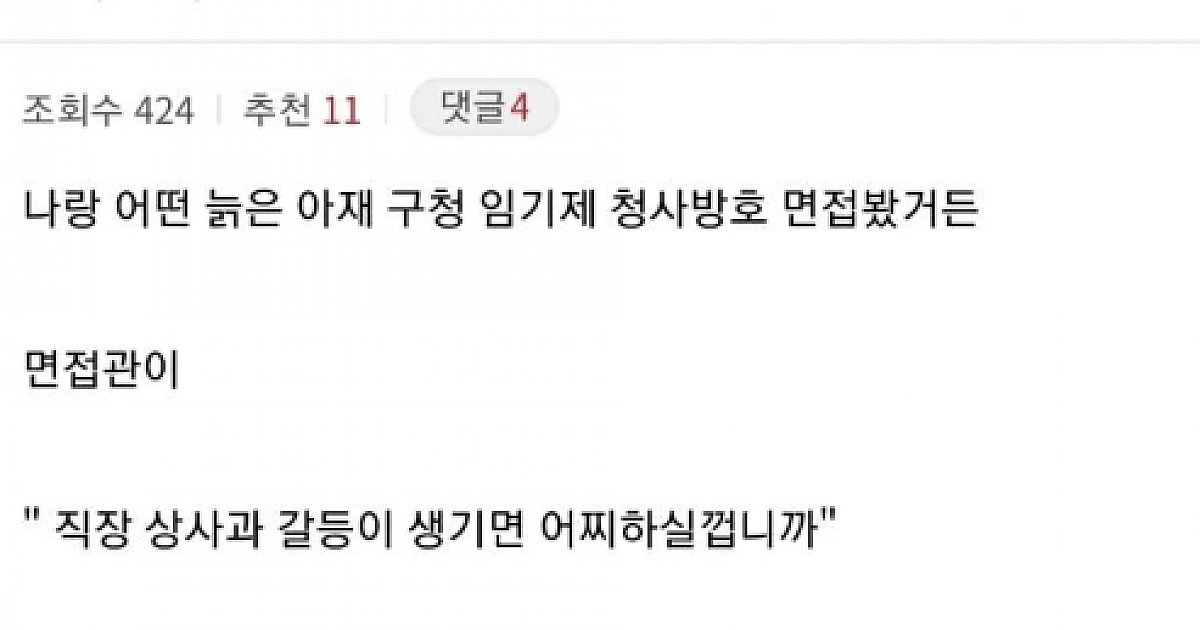 동네 구청 채용 면접 결과에 개빡친 디시인
