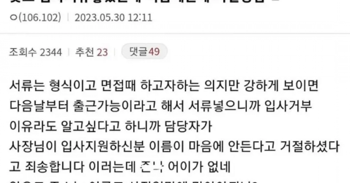 이름 때문에 면접에 탈락한 취업생 사연