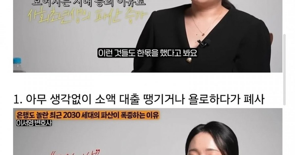 은행이 경악한다는 2030대 파산폭증 이유