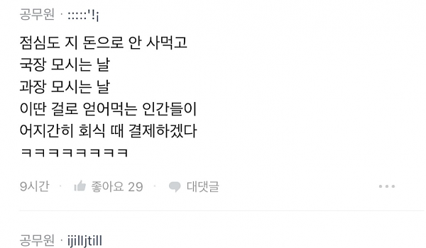 공무원 회식 엔빵은 말도안된다는 서울시공무원