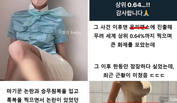 마기꾼 논란과 승무원복 입고 룩북찍어 논란있었던 이블린의 최근 근황ㄷㄷㄷ.jpg