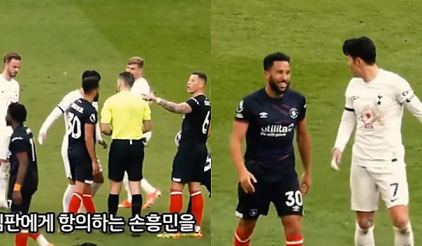 경기 중 심판에게 항의하는 과정에서도 동료에게는 웃어주는 손흥민 (영상)
