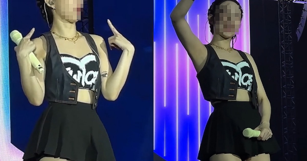크롭탑에 초미니스커트 입고 호응 유도하며 무대 하는 아이돌 (영상)