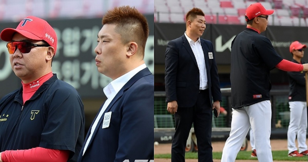 이범호 감독과 반갑게 인사를 나눴다.