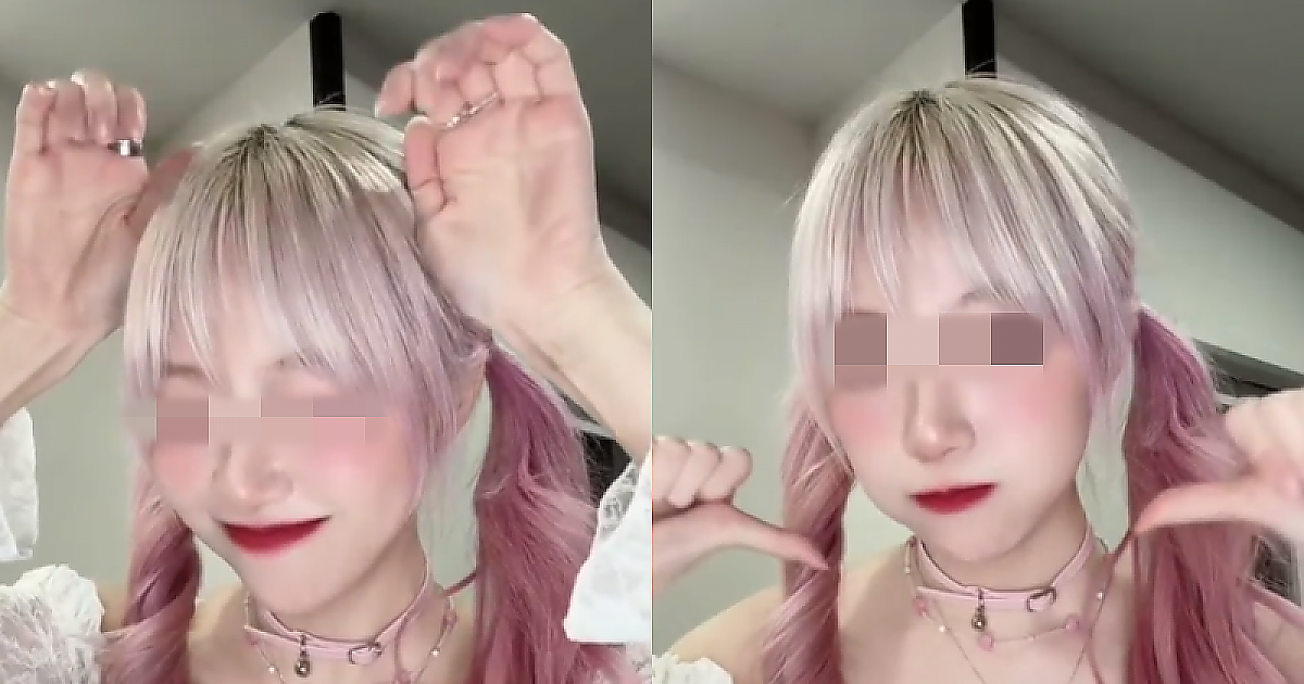 챌린저 찍는 웃는게 예쁜 양갈래머리의 아이돌.gif