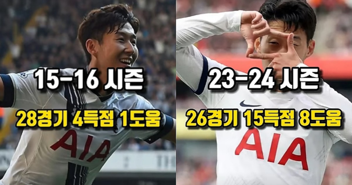토트넘 캡틴 손흥민의 EPL 데뷔부터 현재까지 시즌별 '리그 기록' (영상)