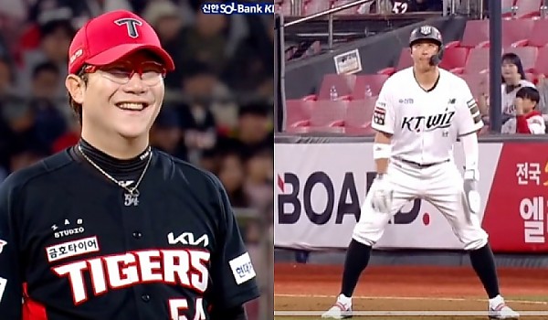 '웃참' 실패한 양현종...팬들도 웃게 만든 황성빈 따라하는 황재균의 댄스타임 (영상)