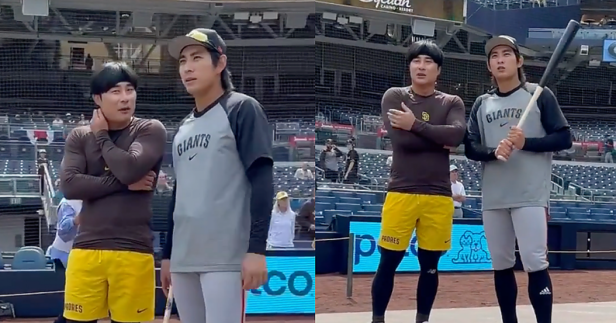 (영상) 오늘 경기 전에 만난 '이정후' 와 '김하성' , 영광스러운 투샷
