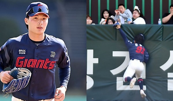 [롯데 vs SGG] 펜스에 충돌..엄청난 호수비 펼치는 윤동희(영상)
