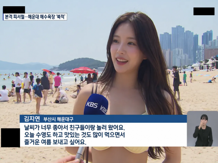 뉴스에 나왔다가 사진 퍼진 해변 인터뷰녀