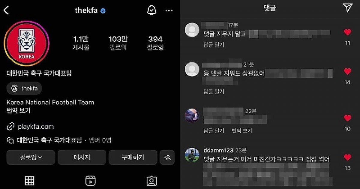 [실시간] 현재 난리라는 대한민국 '축구협회 인스타' 댓글 상황...