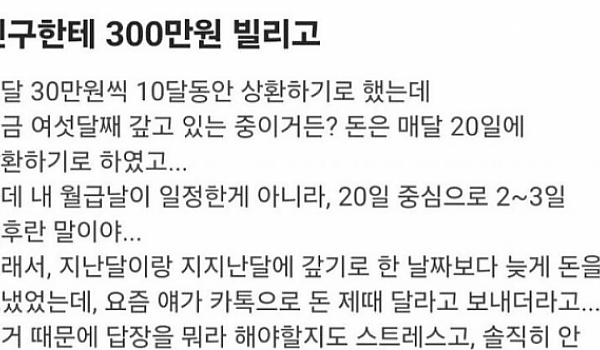 친구한테 300만원 빌리고