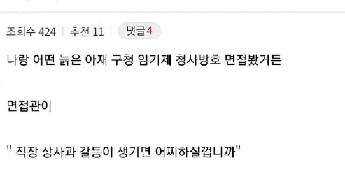 동네 구청 채용 면접 결과에 개빡친 디시인