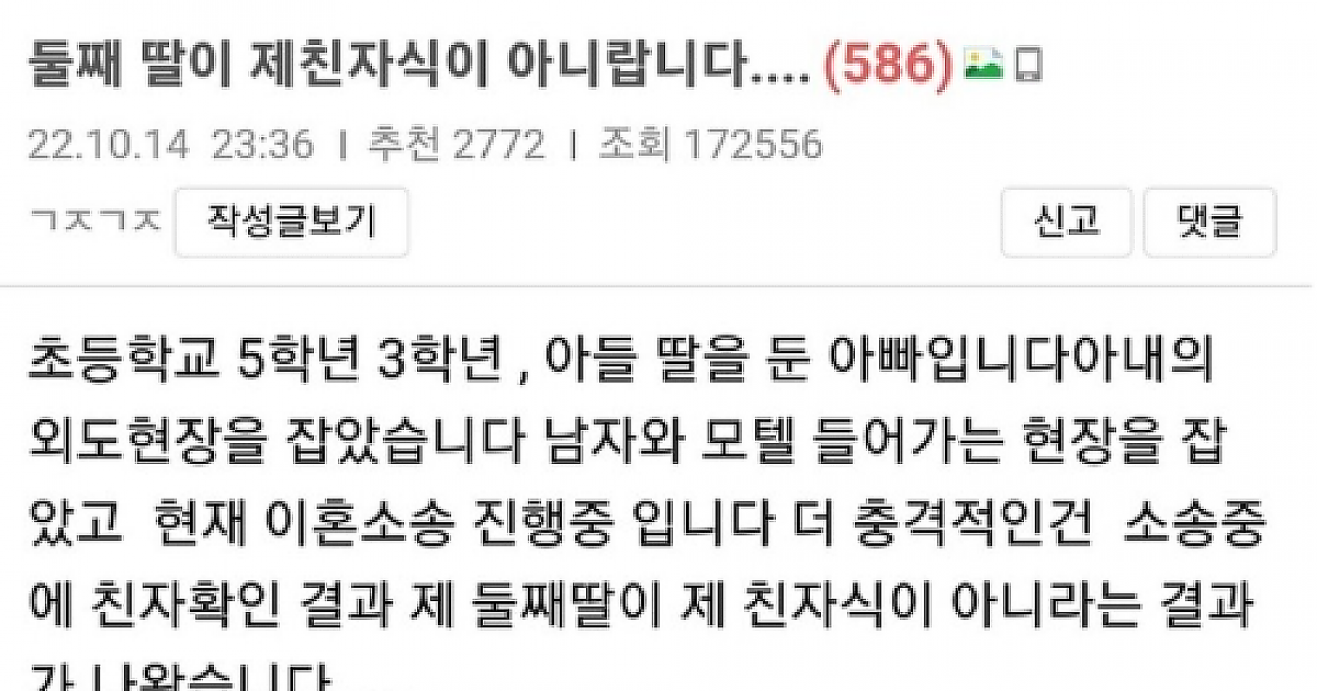 둘째 딸이 친자식이 아니랍니다