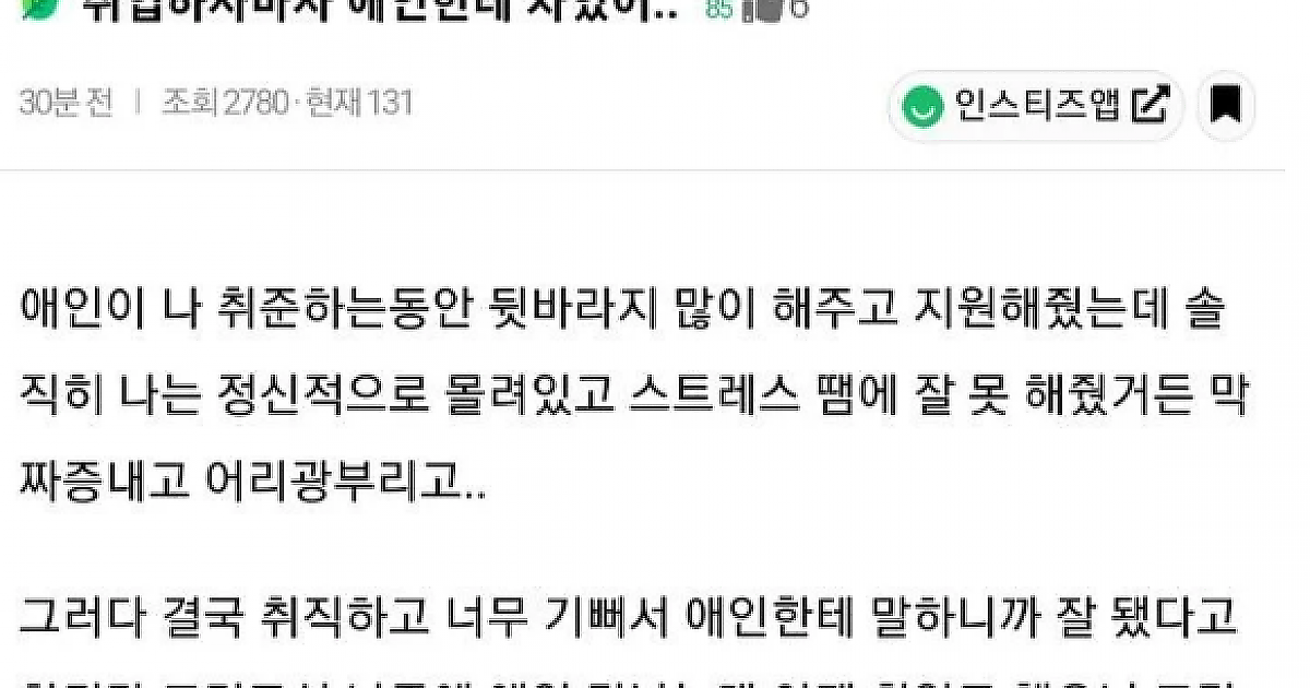취업하자마자 애인에게 차인 사람