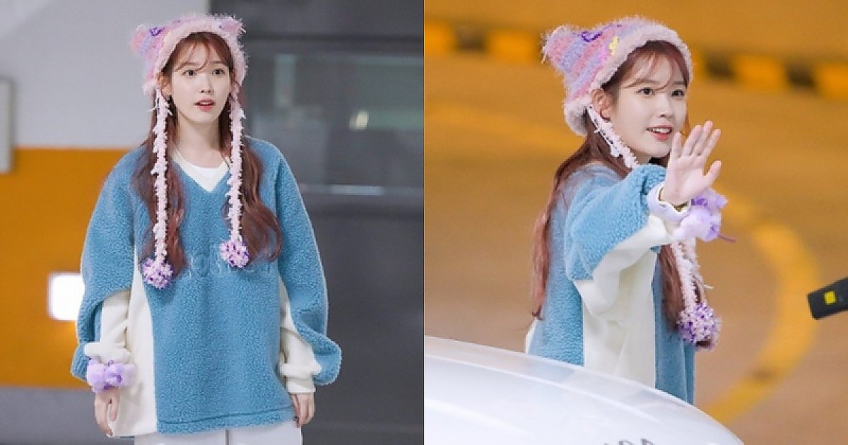 퇴근길 팬들에게 인사하는 아름다운 아이유의 귀여움 수준..(영상)