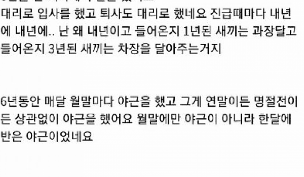 6년을 묵묵히 일하던 사람 퇴사한 사연