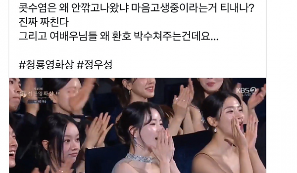 청룡영화제 정우성 수상소감 반응으로 불똥튄 여배우, 집단광기의 끝이네...