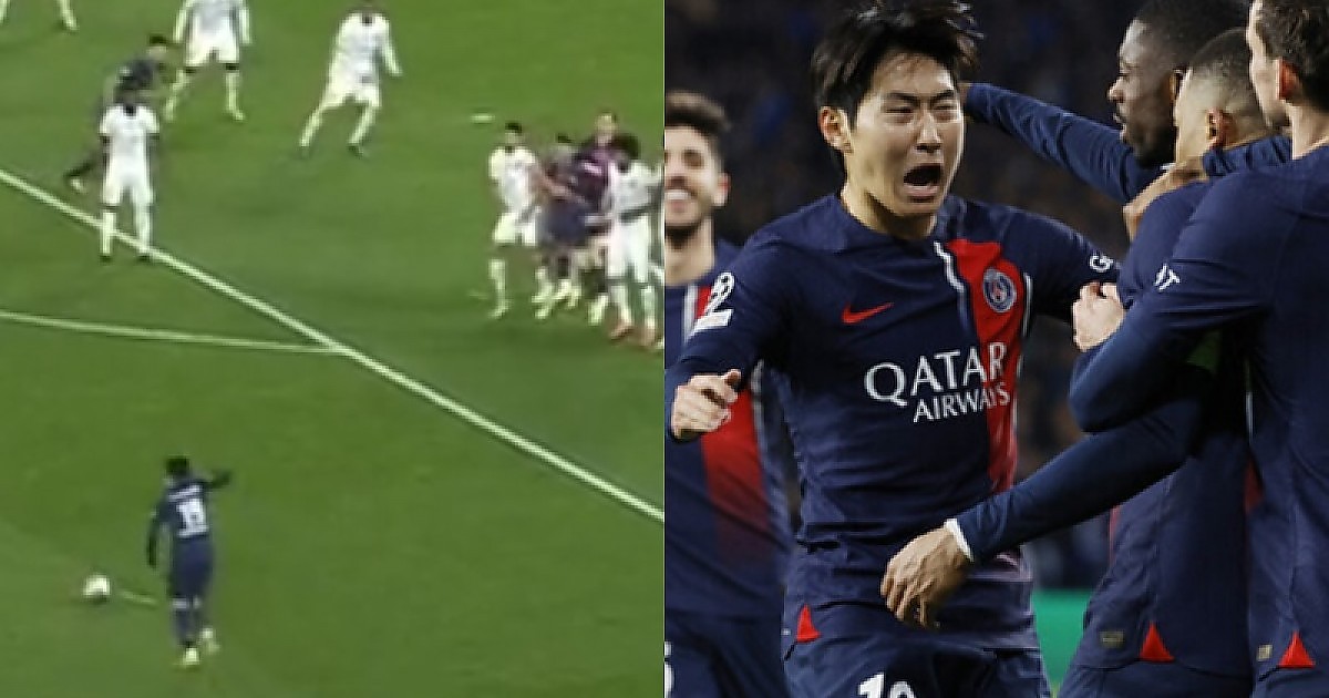 [PSG vs니스] '이강인 선수'의 소름끼치는 궤적 프리킥 (영상)