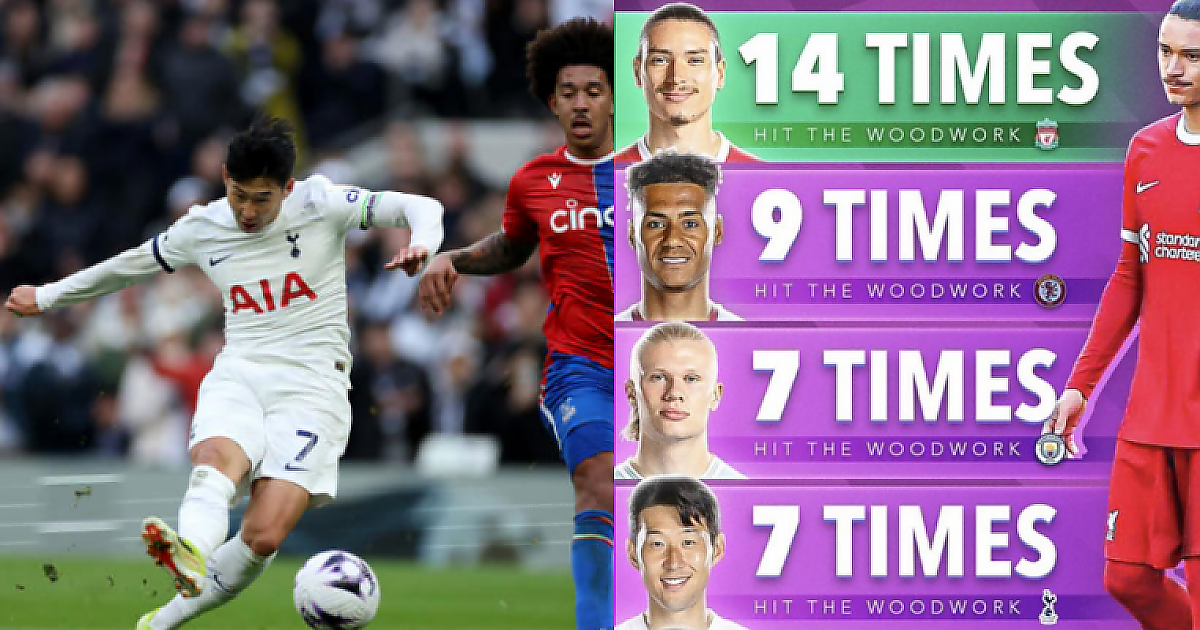 축구 선수 손흥민이 Score 90 매체에 따르면 2022년 이후 리버풀에 합류한 누녜스와 함께 EPL에서 가장 많이 골대를 맞힌 선수 중 하나로 등장했다.