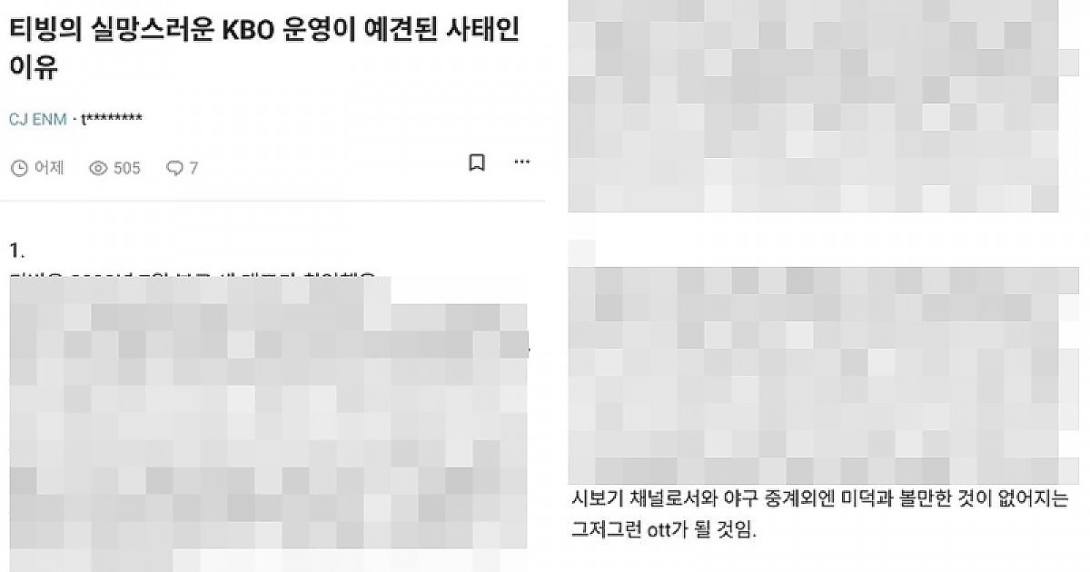 블라인드에 올라온 CJ ENM 현직자가 말한 티빙 야구중계가 개판이 된 이유...