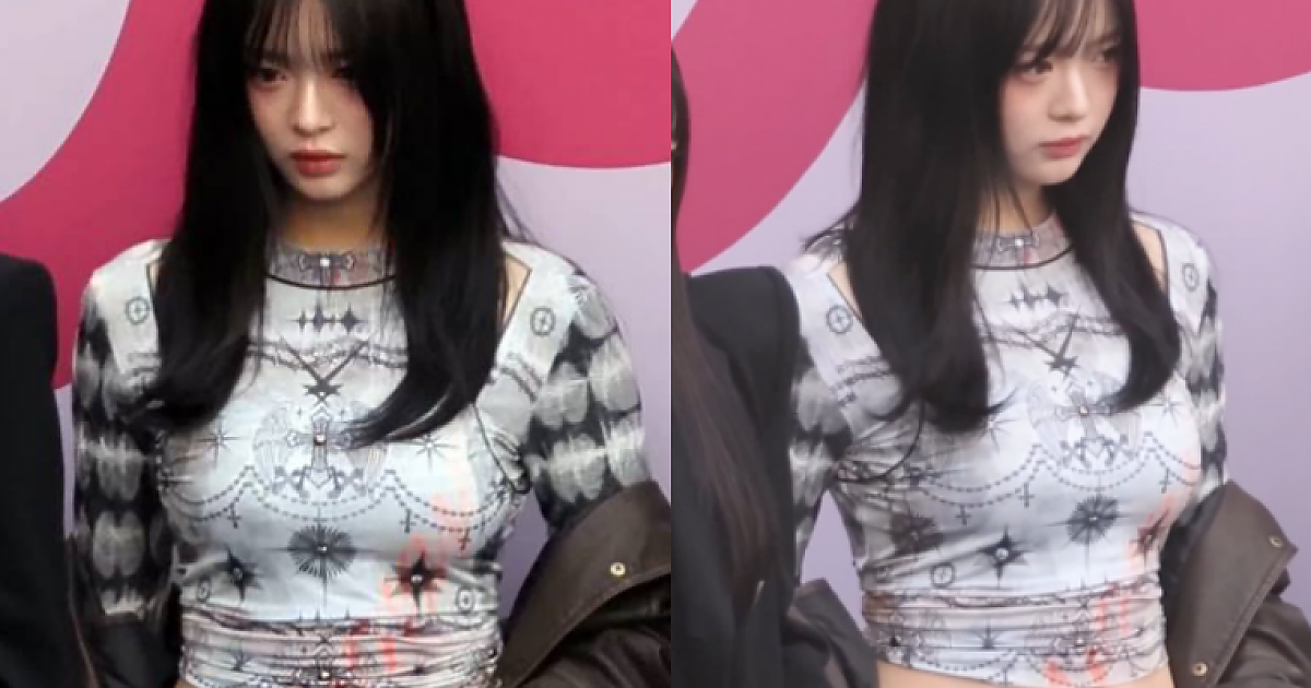 서울 패션위크 밀착 티셔츠로 포인트를 준 '뉴진스 하니' (영상)