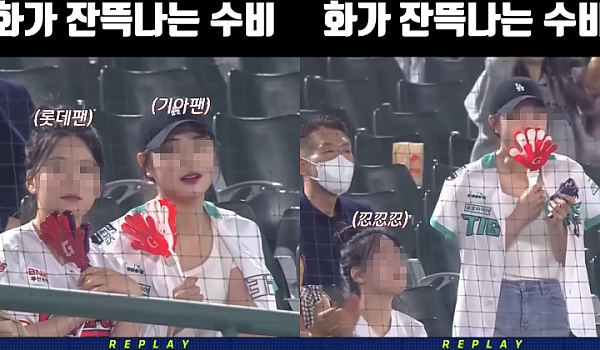 [롯데VS기아] '표정관리' 못하고 '네이버' 메인에 박제당한 '아름다운 미모'의 여성팬 …