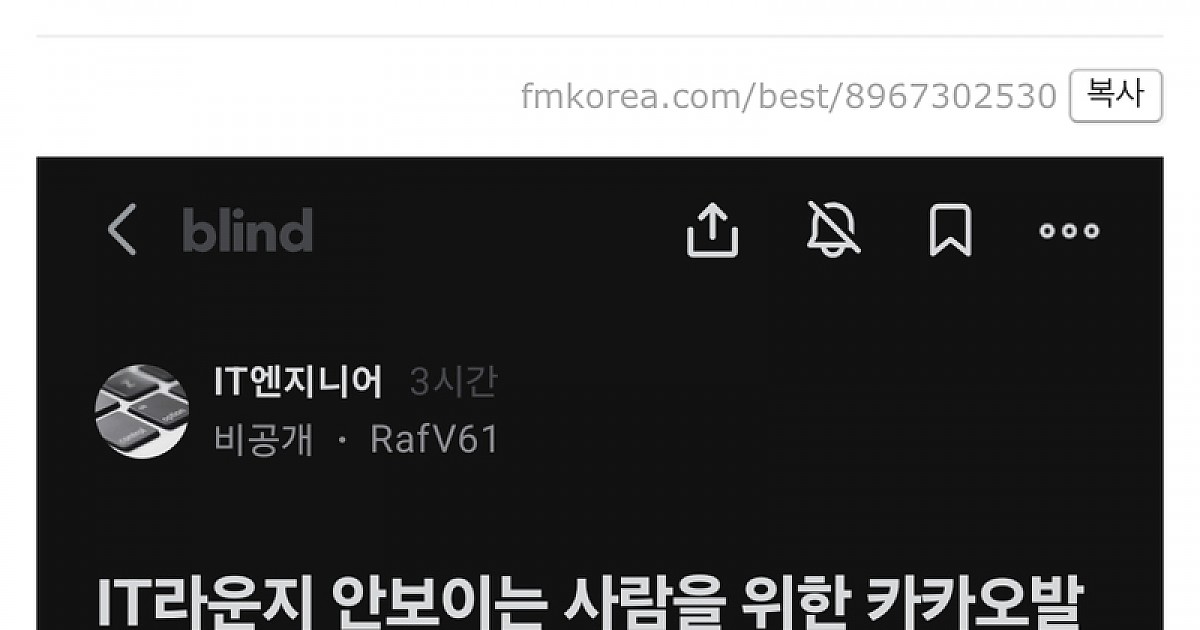 블라인드에 새로 올라온 관련종사자의 카카오톡 현상황 폭로