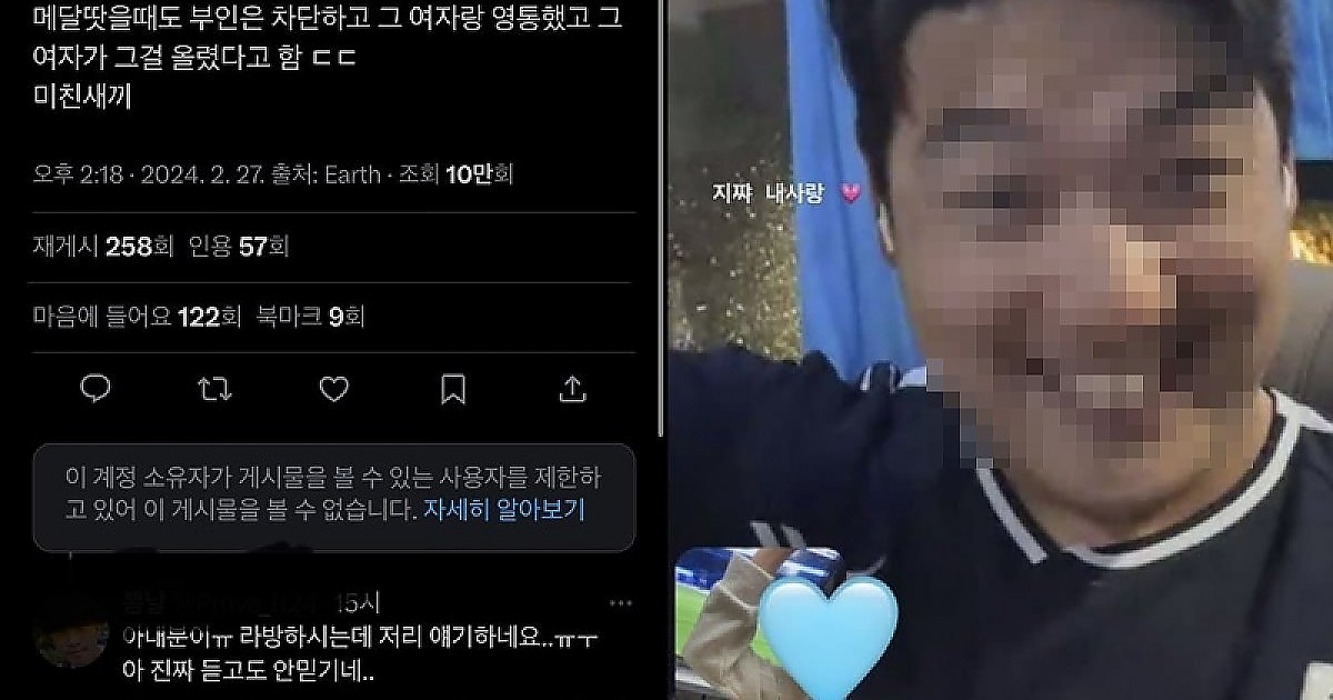 금메달 야구선수 내연녀가 대놓고 인스타에 올렸던 금메달 딴 영통사진ㄷㄷㄷㄷㄷ.jpg