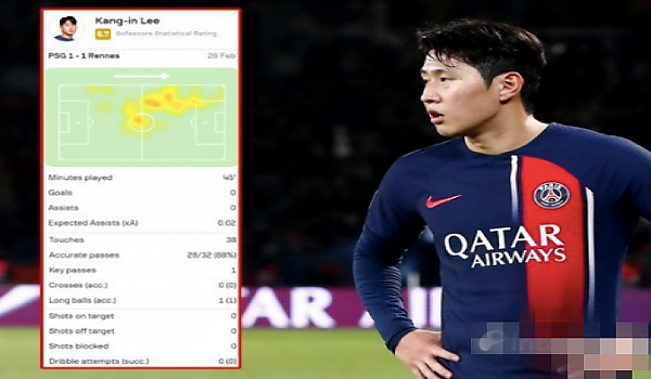 '슈팅, 드리블 제로' 하락중인 이강인, 45분 교체 아웃, 최저 평점 혹평