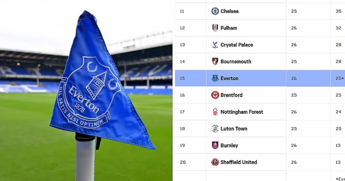 Everton은 프리미어 리그의 수익성 및 지속 가능성 규칙(PSR)을 위반하여 감점 10점을 6점으로 줄였습니다.