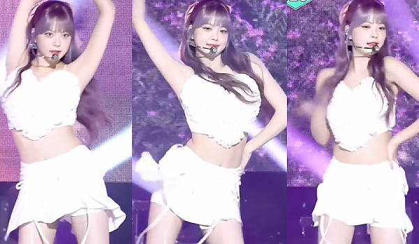 순백의 투피스 의상... 11자 복근 자랑하는 '르세라핌 홍은채'