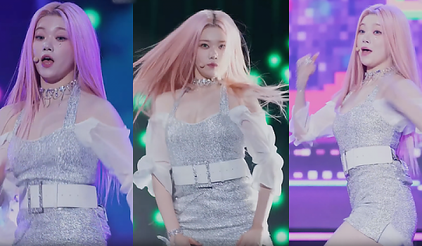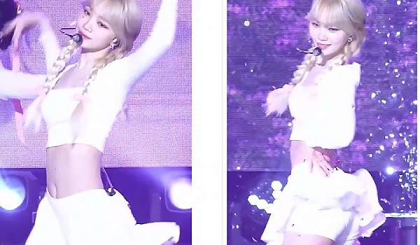 청치마 의상으로 드러내는 새하얀 몸매의 스테이씨 멤버(영상)