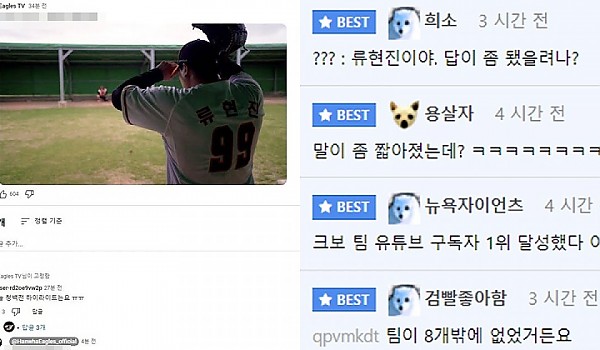 갑자기 말투가 거만해진 한화이글스 유튜브 채널.jpg