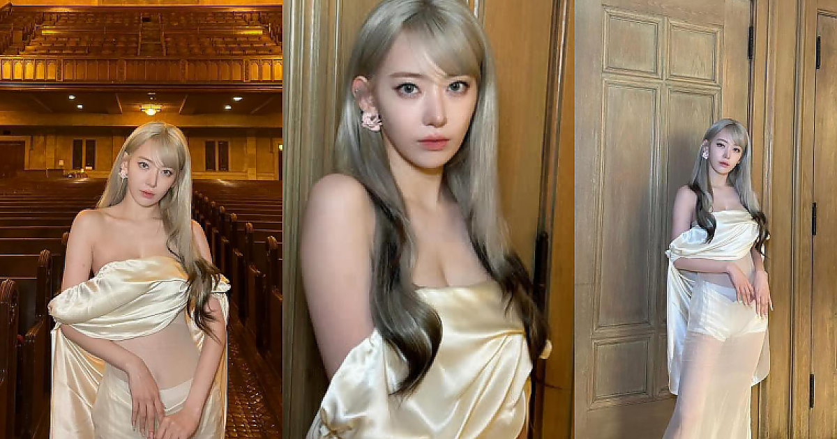 섹시한 '르세라핌 사쿠라' 의 오프솔더 드레스