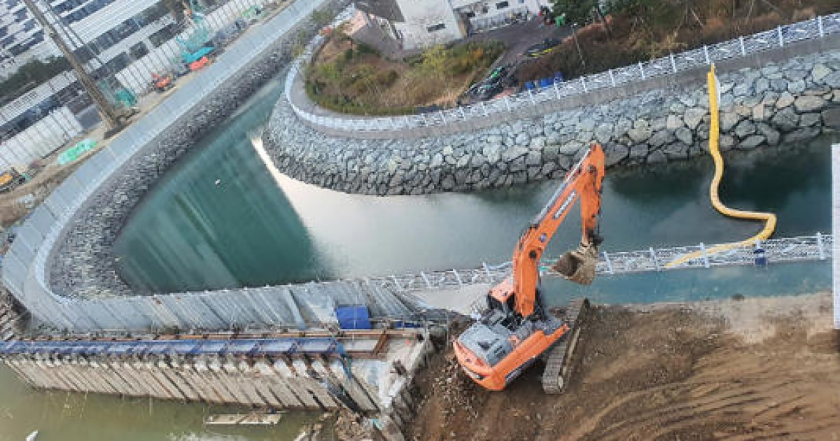 여수시, 웅천 흙막이벽 붕괴사고…추가 붕괴위험 차단