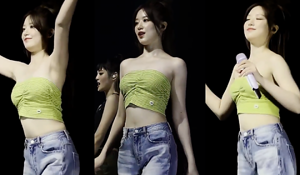 연두색 줄무늬 '튜브탑' 입고 '귀여운 안무' 보여주는 아이들 슈화