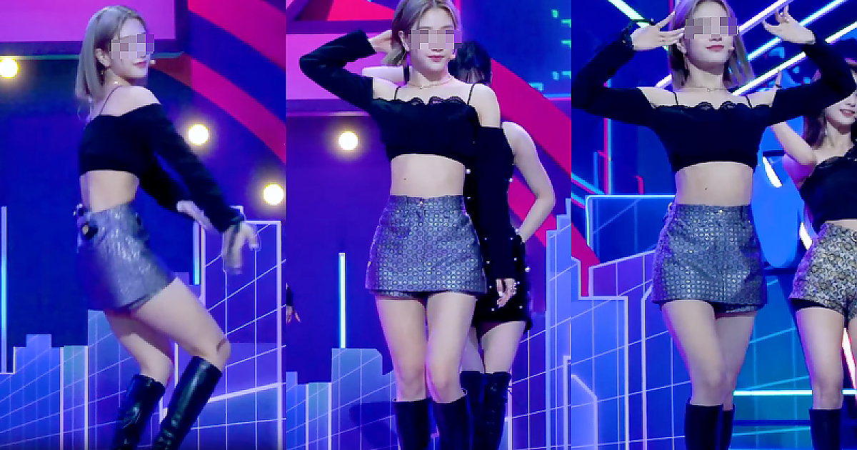 '블랙 크롭 오프솔더' 의상으로 드러내는 아름다운 아이돌의 영상