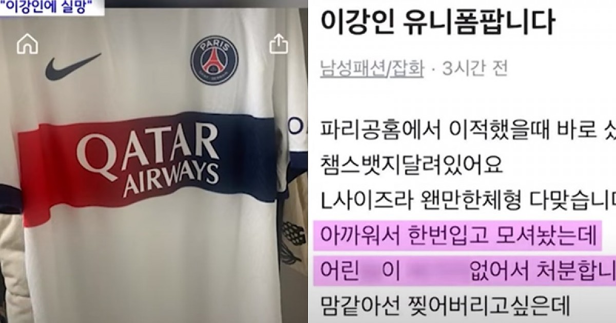 맘같아선 찢어버리고 싶다는 이강인의 유니폼이라며 당근마켓에 속속히 올라오는중...(영상)