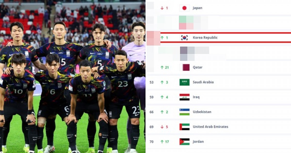 카타르 아시안컵에서 4강에 진출하며 랭킹 포인트를 추가해 순위를 끌어올렸습니다.