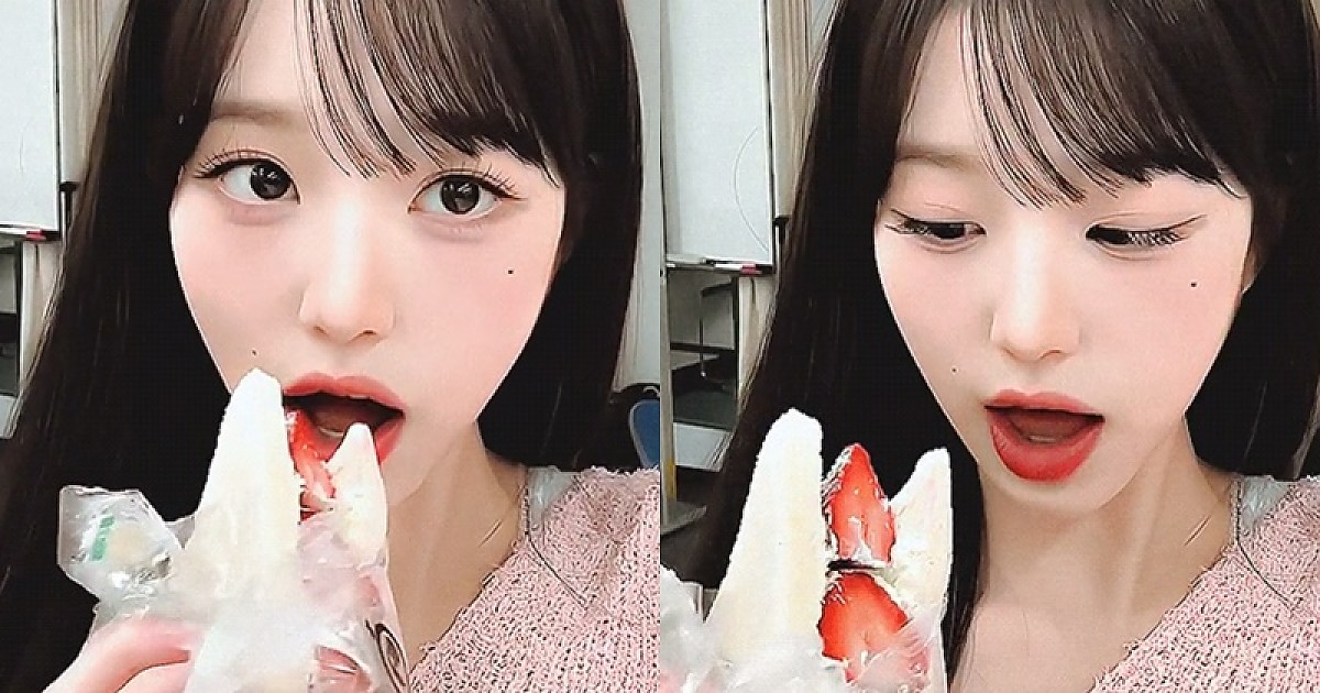 딸기 샌드위치를 먹는 역대급 미모의 장원영 (영상)