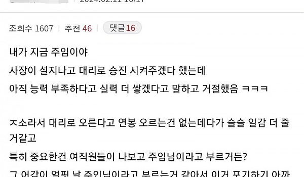 주임이 대리승진을 거부한 이유