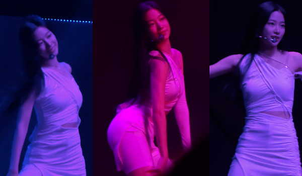 (영상) 빨간 조명 밑에 '르세라핌 카즈하' 밀착 원피스