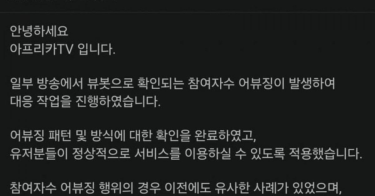 오피셜) 아프리카TV 어뷰징 때려 잡겠다 선언