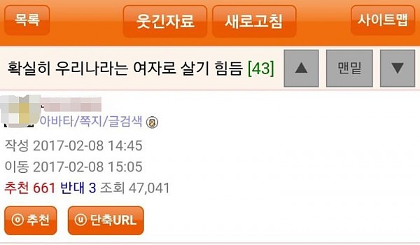 우리나라는 여자로 살기 힘든 나라임